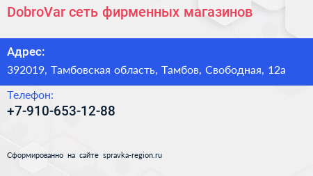 DobroVar, сеть фирменных магазинов по адресу 392019, Тамбовская область, Тамбов, Свободная, 12а в дальнейшем Организация, размещена в следующих категориях: