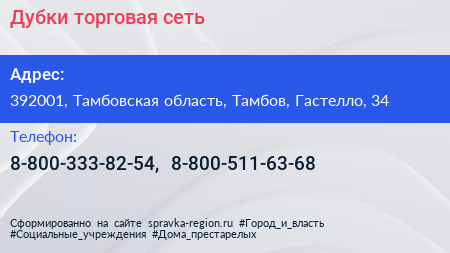 Дубки, торговая сеть по адресу 392001, Тамбовская область, Тамбов, Гастелло, 34 в дальнейшем Организация, размещена в следующих категориях: