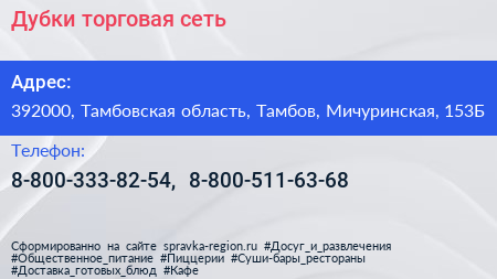 Дубки, торговая сеть по адресу 392000, Тамбовская область, Тамбов, Мичуринская, 153Б в дальнейшем Организация, размещена в следующих категориях: