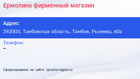 Ермолино, фирменный магазин по адресу 392003, Тамбовская область, Тамбов, Рылеева, 60а в дальнейшем Организация, размещена в следующих категориях: