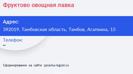 Фруктово-овощная лавка по адресу 392019, Тамбовская область, Тамбов, Агапкина, 15 в дальнейшем Организация, размещена в следующих категориях: