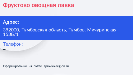 Фруктово-овощная лавка по адресу 392000, Тамбовская область, Тамбов, Мичуринская, 153Б/1 в дальнейшем Организация, размещена в следующих категориях: