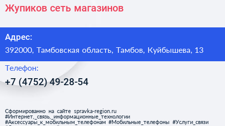 Жупиков, сеть магазинов по адресу 392000, Тамбовская область, Тамбов, Куйбышева, 13 в дальнейшем Организация, размещена в следующих категориях:
