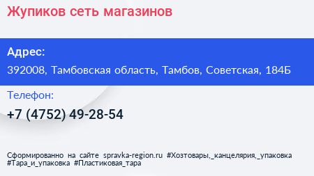 Жупиков, сеть магазинов по адресу 392008, Тамбовская область, Тамбов, Советская, 184Б в дальнейшем Организация, размещена в следующих категориях: