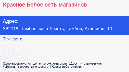 Красное & Белое, сеть магазинов по адресу 392019, Тамбовская область, Тамбов, Агапкина, 13 в дальнейшем Организация, размещена в следующих категориях: