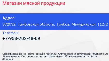 Магазин мясной продукции по адресу 392032, Тамбовская область, Тамбов, Мичуринская, 112/2 в дальнейшем Организация, размещена в следующих категориях: