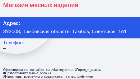 Магазин мясных изделий по адресу 392008, Тамбовская область, Тамбов, Советская, 161 в дальнейшем Организация, размещена в следующих категориях: