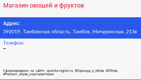 Магазин овощей и фруктов по адресу 392019, Тамбовская область, Тамбов, Мичуринская, 213в в дальнейшем Организация, размещена в следующих категориях: