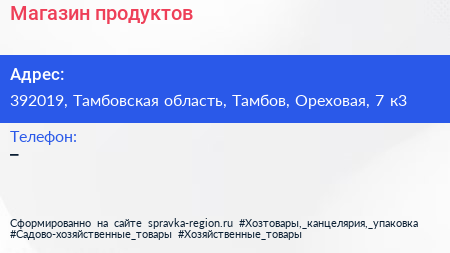 Магазин продуктов по адресу 392019, Тамбовская область, Тамбов, Ореховая, 7 к3 в дальнейшем Организация, размещена в следующих категориях: