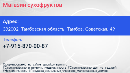 Магазин сухофруктов по адресу 392002, Тамбовская область, Тамбов, Советская, 49 в дальнейшем Организация, размещена в следующих категориях: