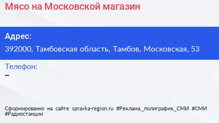 Мясо на Московской, магазин по адресу 392000, Тамбовская область, Тамбов, Московская, 53 в дальнейшем Организация, размещена в следующих категориях: