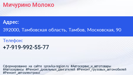 Мичурино Молоко по адресу 392000, Тамбовская область, Тамбов, Московская, 90 в дальнейшем Организация, размещена в следующих категориях: