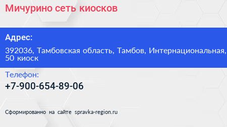 Мичурино, сеть киосков по адресу 392036, Тамбовская область, Тамбов, Интернациональная, 50 киоск в дальнейшем Организация, размещена в следующих категориях:
