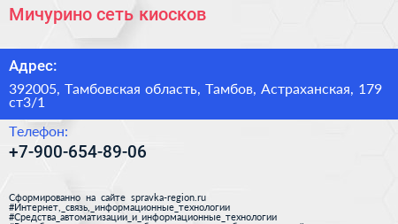 Мичурино, сеть киосков по адресу 392005, Тамбовская область, Тамбов, Астраханская, 179 ст3/1 в дальнейшем Организация, размещена в следующих категориях: