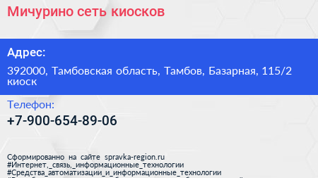 Мичурино, сеть киосков по адресу 392000, Тамбовская область, Тамбов, Базарная, 115/2 киоск в дальнейшем Организация, размещена в следующих категориях: