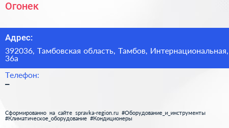 Огонек по адресу 392036, Тамбовская область, Тамбов, Интернациональная, 36а в дальнейшем Организация, размещена в следующих категориях: