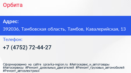 Орбита по адресу 392036, Тамбовская область, Тамбов, Кавалерийская, 13 в дальнейшем Организация, размещена в следующих категориях: