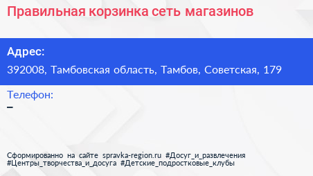 Правильная корзинка, сеть магазинов по адресу 392008, Тамбовская область, Тамбов, Советская, 179 в дальнейшем Организация, размещена в следующих категориях: