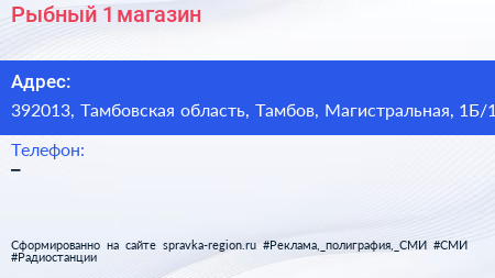 Рыбный №1, магазин по адресу 392013, Тамбовская область, Тамбов, Магистральная, 1Б/1 в дальнейшем Организация, размещена в следующих категориях:
