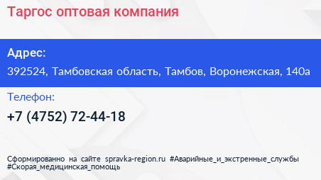 Таргос, оптовая компания по адресу 392524, Тамбовская область, Тамбов, Воронежская, 140а в дальнейшем Организация, размещена в следующих категориях: