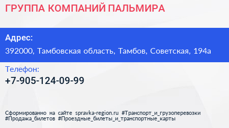 ГРУППА КОМПАНИЙ ПАЛЬМИРА по адресу 392000, Тамбовская область, Тамбов, Советская, 194а в дальнейшем Организация, размещена в следующих категориях: