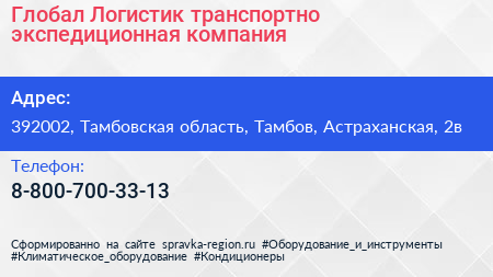 Глобал Логистик, транспортно-экспедиционная компания по адресу 392002, Тамбовская область, Тамбов, Астраханская, 2в в дальнейшем Организация, размещена в следующих категориях: