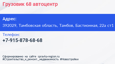 Грузовик 68, автоцентр по адресу 392029, Тамбовская область, Тамбов, Бастионная, 22а ст1 в дальнейшем Организация, размещена в следующих категориях: