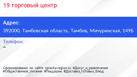 19, торговый центр по адресу 392000, Тамбовская область, Тамбов, Мичуринская, 149Б в дальнейшем Организация, размещена в следующих категориях: