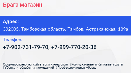 Брага, магазин по адресу 392005, Тамбовская область, Тамбов, Астраханская, 189а в дальнейшем Организация, размещена в следующих категориях: