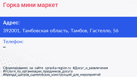 Горка, мини-маркет по адресу 392001, Тамбовская область, Тамбов, Гастелло, 56 в дальнейшем Организация, размещена в следующих категориях: