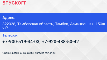 БРУСКОFF по адресу 392028, Тамбовская область, Тамбов, Авиационная, 150ж ст9 в дальнейшем Организация, размещена в следующих категориях: