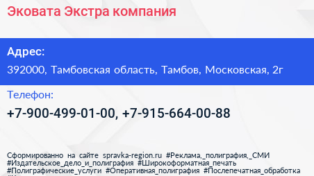 Эковата Экстра, компания по адресу 392000, Тамбовская область, Тамбов, Московская, 2г в дальнейшем Организация, размещена в следующих категориях: