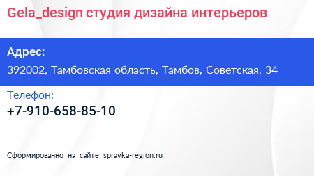 Gela_design, студия дизайна интерьеров по адресу 392002, Тамбовская область, Тамбов, Советская, 34 в дальнейшем Организация, размещена в следующих категориях:
