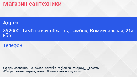Магазин сантехники по адресу 392000, Тамбовская область, Тамбов, Коммунальная, 21а к56 в дальнейшем Организация, размещена в следующих категориях: