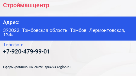 Строймашцентр по адресу 392022, Тамбовская область, Тамбов, Лермонтовская, 134а в дальнейшем Организация, размещена в следующих категориях: