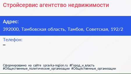 Стройсервис, агентство недвижимости по адресу 392000, Тамбовская область, Тамбов, Советская, 192/2 в дальнейшем Организация, размещена в следующих категориях: