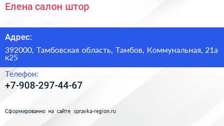 Елена, салон штор по адресу 392000, Тамбовская область, Тамбов, Коммунальная, 21а к25 в дальнейшем Организация, размещена в следующих категориях: