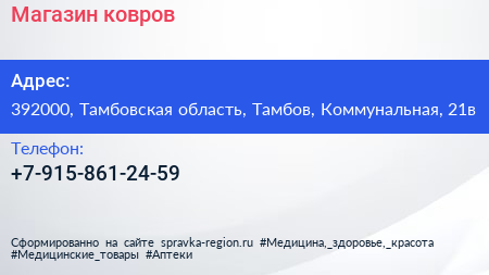 Магазин ковров по адресу 392000, Тамбовская область, Тамбов, Коммунальная, 21в в дальнейшем Организация, размещена в следующих категориях: