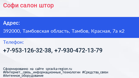 Софи, салон штор по адресу 392000, Тамбовская область, Тамбов, Красная, 7а к2 в дальнейшем Организация, размещена в следующих категориях: