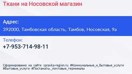 Ткани на Носовской, магазин по адресу 392000, Тамбовская область, Тамбов, Носовская, 9а в дальнейшем Организация, размещена в следующих категориях: