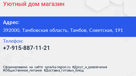 Уютный дом, магазин по адресу 392000, Тамбовская область, Тамбов, Советская, 191 в дальнейшем Организация, размещена в следующих категориях: