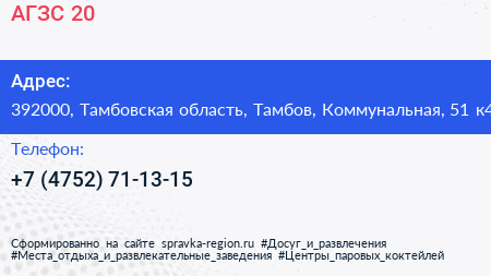АГЗС№20 по адресу 392000, Тамбовская область, Тамбов, Коммунальная, 51 к4 в дальнейшем Организация, размещена в следующих категориях: