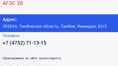АГЗС№20 по адресу 392014, Тамбовская область, Тамбов, Киквидзе, 83/1 в дальнейшем Организация, размещена в следующих категориях: