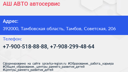АШ-АВТО, автосервис по адресу 392000, Тамбовская область, Тамбов, Советская, 206 в дальнейшем Организация, размещена в следующих категориях: