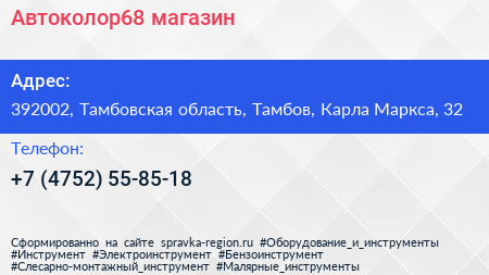 Автоколор68, магазин по адресу 392002, Тамбовская область, Тамбов, Карла Маркса, 32 в дальнейшем Организация, размещена в следующих категориях: