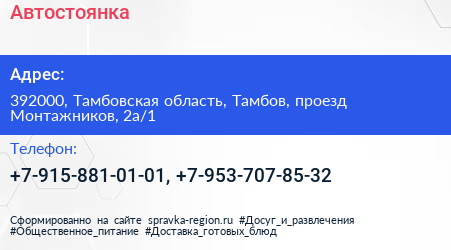 Автостоянка по адресу 392000, Тамбовская область, Тамбов, проезд Монтажников, 2а/1 в дальнейшем Организация, размещена в следующих категориях:
