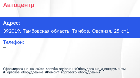 Автоцентр по адресу 392019, Тамбовская область, Тамбов, Овсяная, 25 ст1 в дальнейшем Организация, размещена в следующих категориях: