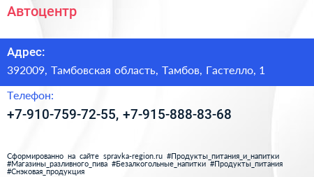 Автоцентр по адресу 392009, Тамбовская область, Тамбов, Гастелло, 1 в дальнейшем Организация, размещена в следующих категориях: