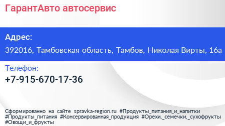 ГарантАвто, автосервис по адресу 392016, Тамбовская область, Тамбов, Николая Вирты, 16а в дальнейшем Организация, размещена в следующих категориях: