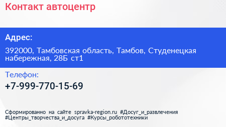Контакт, автоцентр по адресу 392000, Тамбовская область, Тамбов, Студенецкая набережная, 28Б ст1 в дальнейшем Организация, размещена в следующих категориях: